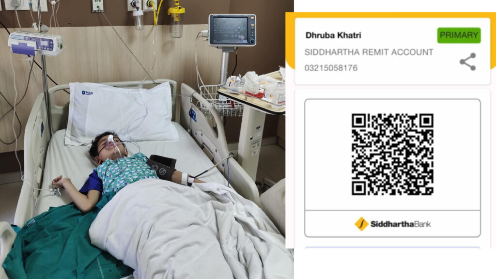 हाल दिल्लीको म्याक्स हस्पिटलमा उपचार जारी छ । डेढदेखि दुई करोड रुपैयाँ खर्च लाग्ने चिकित्सकले जनाएको छ । परिवारले अहिले सहयोगको याचना गरेपछि मनकारीले सहयोग गरिरहेका छन् ।